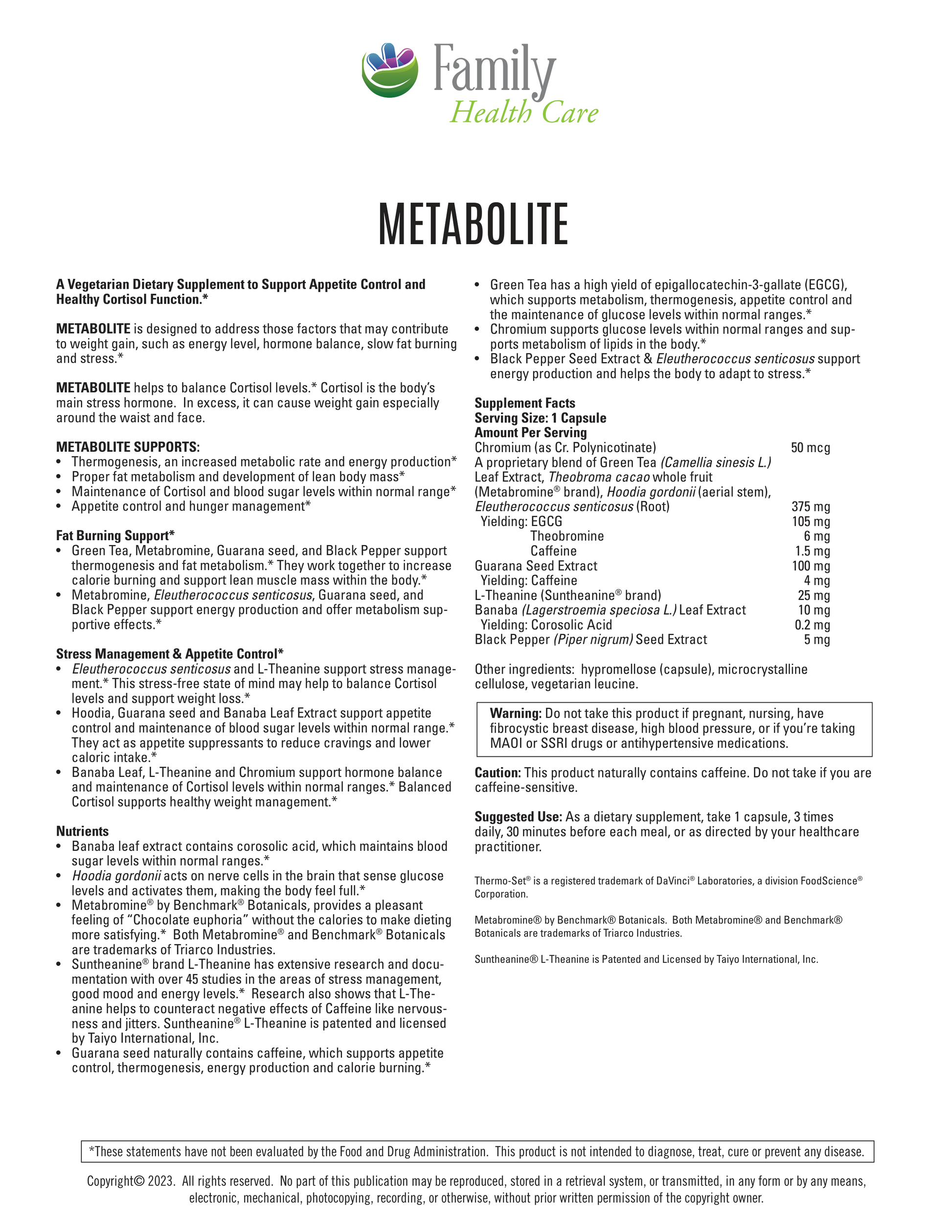 Metabolite is designed to address those factors that may contribute to weight gain, such as energy level, hormone balance, slow fat burning and stress