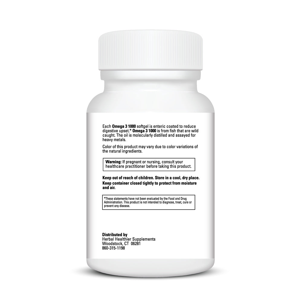 Omega-3, 1000, is an Omega 3 fatty acid supplement to support cholesterol levels within normal ranges. The omega-3 fatty acids are important to health, especially for the heart, brain and cell membranes of the body.Eicosapentaenoic Acid (EPA) and Docosahexaenoic Acid (DHA) are pre precursors to the PGE3 series of prostaglandins, which are substances important to proper body regulation. Omega-3, 1000 is from deep cold water fish that are caught wild. The oil is cold-pressed, molecularly distilled and assyed for PCBs and heavy metals. Enteric coated to reduce digestive upset and can be taken with or without meals.